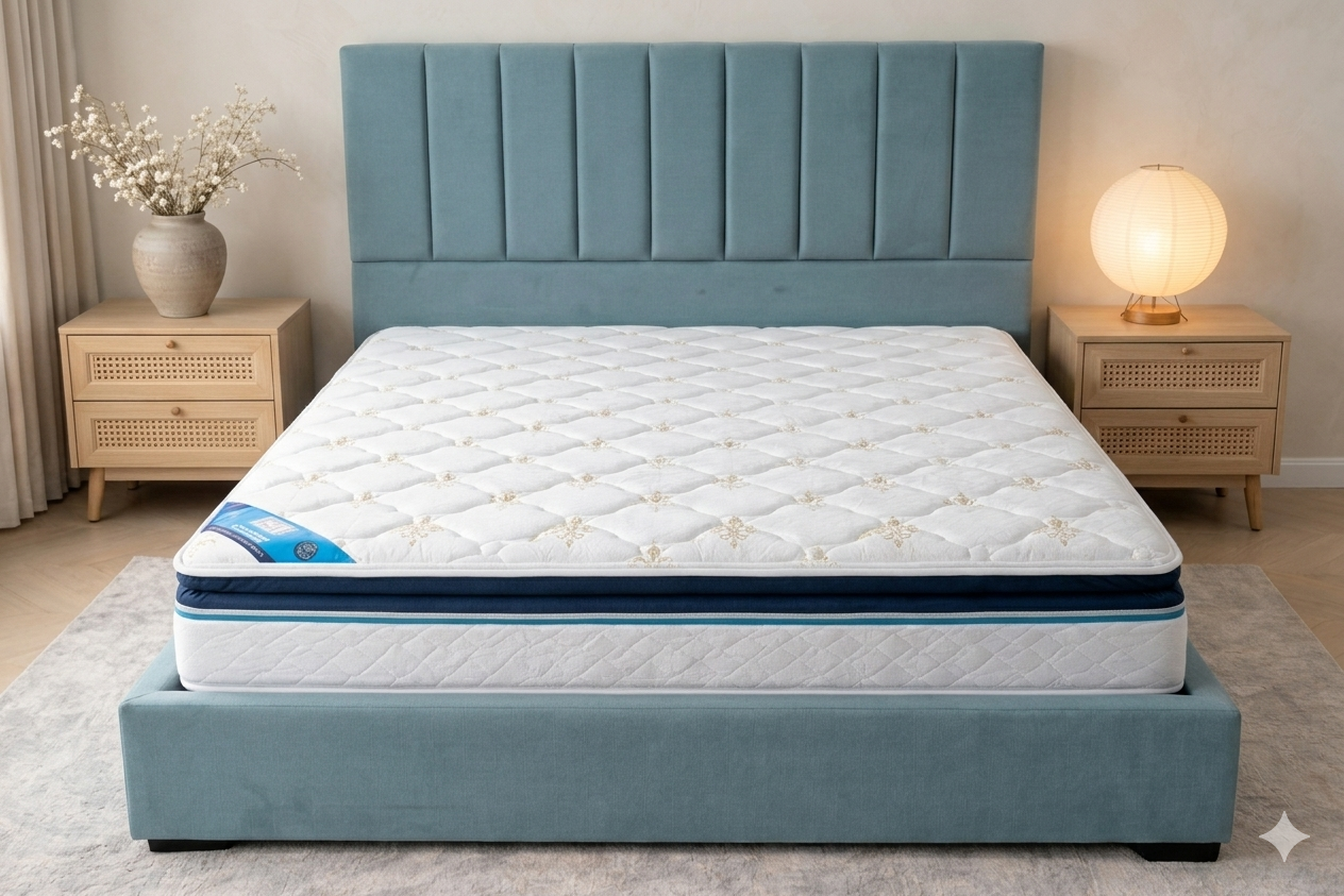 The Recharge Euro Top elevates your sleep experience with its distinctive European-inspired construction a flush, edge-to-edge top panel that provides a sleek look and a uniformly plush feel across the entire mattress surface. The 40mm softly quilted euro-top layer, made from high-quality 40-density foam, offers a firmer, more structured form of surface comfort compared to a traditional pillow top — giving you that luxurious “sink-in” feel without losing support. The bonded foam base anchors the whole system, ensuring long-term durability and consistent performance. A perfect match for those who want refined aesthetics and premium performance in equal measure.